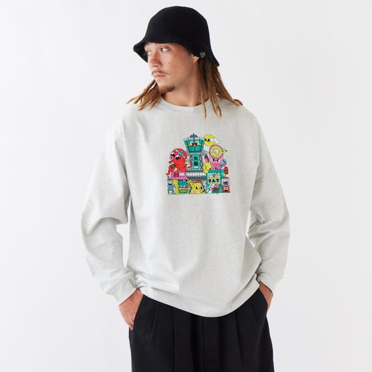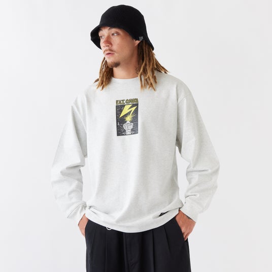 ストリートカルチャーを象徴するスケートボード、バスケ、アート、音楽などと密接にリンクしながら23年目を迎えました。ブランド・アイデンティティーは、オーセンティックなカジュアルを基盤としたオーバーサイズのシルエットと、日本が誇る繊細な仕立て技術と高品質な素材を掛け合わせ、デザイン性と実用性の両方から説得力のあるプロダクトを展開しています。糸から編み立てて、13ozの肉厚生地で仕上げたTシャツは、そのサイズ展開に独自の表記(SKINNY=L、FAT=XL、JUMBO=XXLなど)を用いるなど、ブランドならではの視点が際立っています。