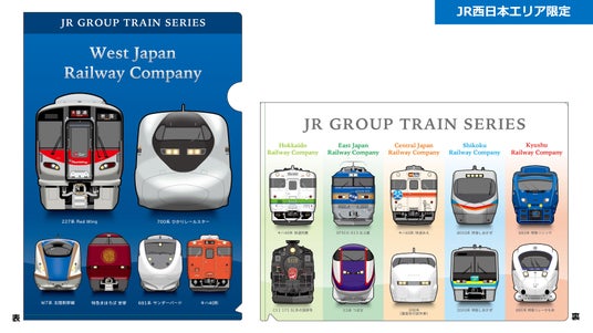 JR西日本の車両6種類と、JRグループ5社の車両2種類ずつ、合計16種類の車両をデザインしたJR西日本店舗限定A4クリアファイルです。本年のみの特別な車両の組み合わせとなっています。全車両描きおろしイラストです!表面は西日本車両のみでデザインした特別仕様です。