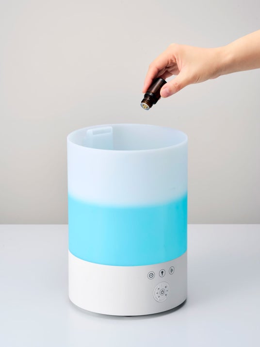 水タンクに直接アロマオイルを入れられる素材を採用しています。これにより、アロマ専用トレーやアロマパッドを用意することなく、お気に入りの香りを加湿器のミストとともに楽しむことができ、乾燥対策をしながらリラックスタイムを過ごすことができます。
