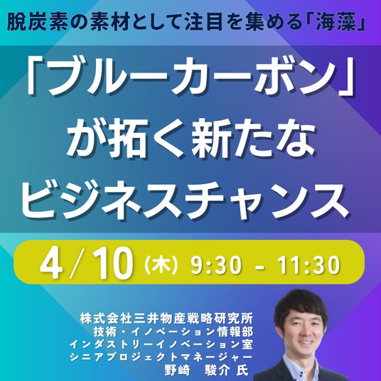 JPI(日本計画研究所)は、株式会社三井物産戦略研究所 技術・イノベーション情報部 シニアプロジェクトマネージャー 野崎 駿介 氏を招聘し、「ブルーカーボン」が拓く新たなビジネスチャンスについて詳説いただくセミナーを開催します。