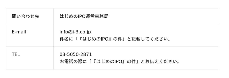 詳細はサービスサイト:https://i-3.co.jp/hajimeno-ipo/をご覧ください。