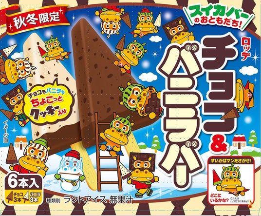 - 「スイカバー」のおともだちとして、秋冬限定「チョコ&バニラバー」が登場!
