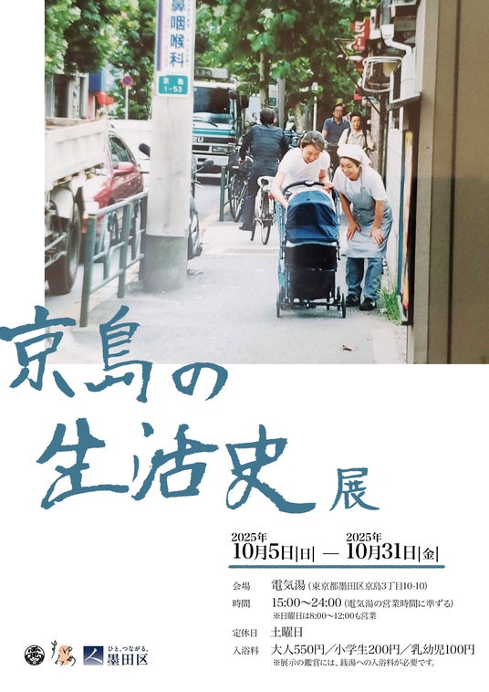 銭湯「電気湯」にて、京島に古くから住む20人以上の方々からの貴重な言葉や写真によって戦禍を免れた下町の100年の記憶をたどる「京島の生活史」展を開催いたします。期間は10月5日(日)から10月31日(金)まで。