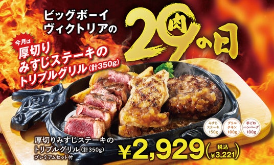 ぜひこの機会にお近くの「ビッグボーイ」「ヴィクトリアステーション」で、ボリューム満点な肉の日限定メニューをお楽しみください。