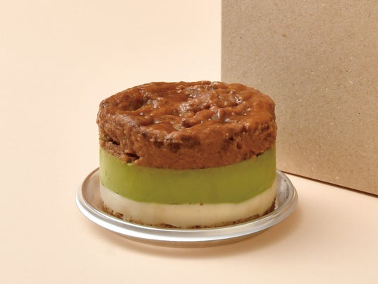 レアチーズとこし餡はなめらか、ボトムのクッキーはサクッと。味わいはもちろん、食感も楽しめる異色のスイーツです。