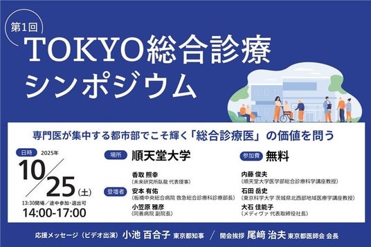 地域に根差した医療の実現を目指す、一般社団法人コミュニティ&コミュニティホスピタル協会(所在地:東京都台東区、代表理事:武藤 正樹)は、2025年10月25日(土)に、順天堂大学医学部総合診療科学講座および地方独立行政法人 東京都立病院機構と共同で「第1回 TOKYO総合診療シンポジウム」を開催いたします。