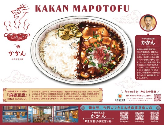 株式会社みんなの社食(本社:東京都港区、代表取締役CEO:齋藤 武仁)は、2025年9月25日より、人気麻婆豆腐専門店「かかん」のメニューを社食デリバリーサービス「みんなの社食」にて提供開始いたします。