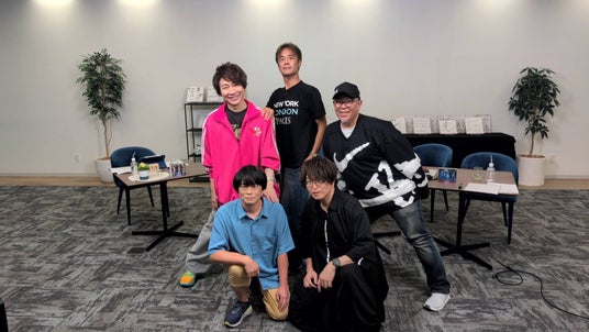 画面が黒いまま「緑川光の、“こしゃくな灼熱ピーチパイ”!!︎」と緑川のタイトルコールが響きます。当時の音楽と共に全員がわちゃわちゃと話しはじめ、ラジオ番組を再現。視聴者からも「懐かしー!」「懐かしすぎーーーー」「うおおおお!」との声が続々と寄せられます。「今回は映像があります!」(緑川)と、オープニングを仕切り直し、5人が映し出されると「8888888」「きたー!!」「令和に大集結の奇跡本当にありがとう」「ヤバい泣く」など、視聴者の感激の声で画面が埋まりました。「E.M.Uでーーす」と手を振ったり踊ったりして、ゆるーくご挨拶。「E.M.U」(Entertaiment Music Unit)は、少女漫画『卒業M』(原作:有栖川ケイ)のメディアミックス作品に出演する緑川光、石川英郎、置鮎龍太郎、神奈延年、阪口大助の5名による声優ユニットで、結成の1995年から解散の2000年まで、CDリリースやライブ、イベント、ラジオのパーソナリティなど、幅広く活動し、今年で結成30周年を迎えます。