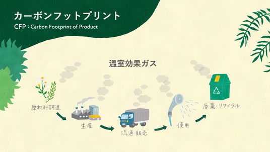 カーボンフットプリント(Carbon Footprint of Product、以下CFP)とは、製品やサービスの原材料調達から廃棄・リサイクルまでのライフサイクル全体を通して排出される温室効果ガスを二酸化炭素(以下CO2)の排出量に換算した値です。温室効果ガス排出量の「見える化」により、排出量が多いポイントの特定や削減、生活者が低炭素な製品を選択する目安となり、カーボンニュートラルの実現に向けた取り組みに貢献します。2025年に10周年を迎えたBOTANISTは誕生からブランドコンセプトを「植物と共に生きる」とし、自然の恵みにより成り立つブランドとして、植物と人がいつまでも共に生きる地球環境の持続をめざしています。 環境に配慮したバイオマス容器やアップサイクル原料を採用したサステナブルな製品づくりや植林活動など、様々な活動に取り組んでいます。