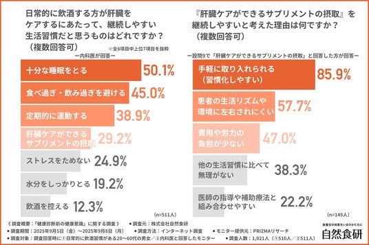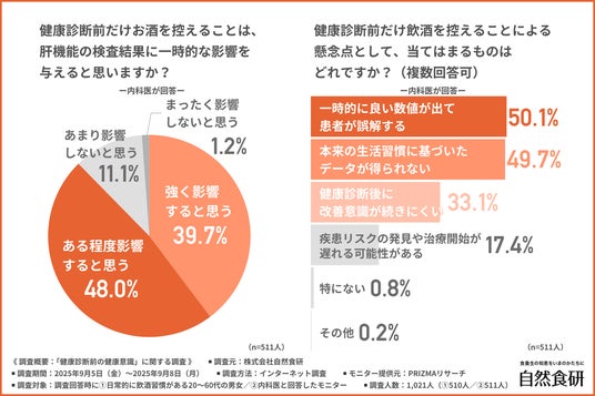 株式会社自然食研(所在地:大分県豊後高田市、代表者:佐々木 興平)は、1.日常的に飲酒習慣がある20~60代の男女/2.内科医を対象に、「健康診断前の健康意識」に関する調査を行いました。