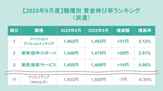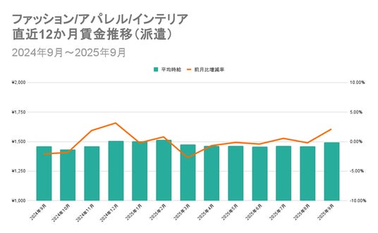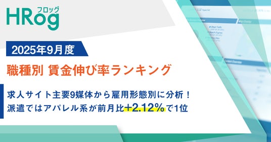 求人サイト主要9媒体から雇用形態別に分析!派遣ではアパレル系が前月比+2.12%で1位【2025年9月度 職種別 賃金伸び率ランキング】