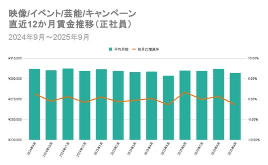 一方、「映像/イベント/芸能/キャンペーン」では2025年5月に下落した後、6月から8月にかけて回復傾向を見せましたが、9月に再び減少となっています。