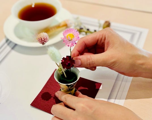 《芸術の秋 展覧会企画》 「いけばな」文化を体験しながらアートの世界に触れる体験型カフェメニュー『おちょこdeちょこっと花時間』を10月21日(火)より期間限定でスタート