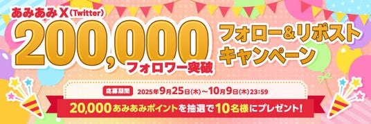 『あみあみ』X(Twitter)フォロワー20万人突破!2万円分のお買い物ができる「20,000あみあみポイント」を抽選でプレゼント。