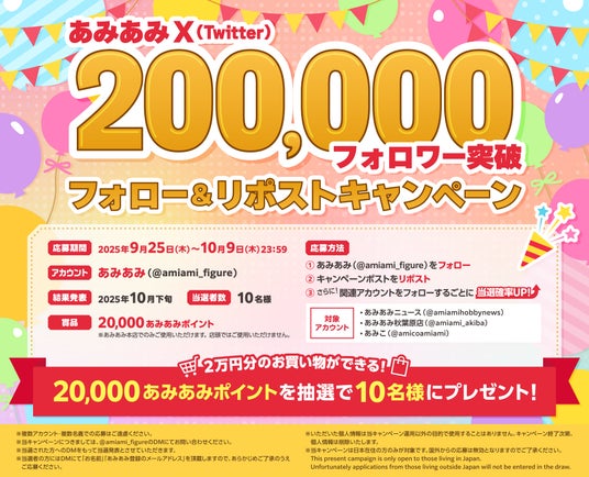 【あみあみアカウント200,000フォロワー突破フォロー&リポストキャンペーン】