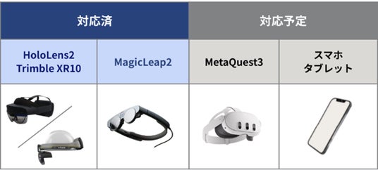 HoloLens2に続き、Magic Leap2に対応。産業用に特化したデバイスの中でも軽量かつ広い視野角、輝度の高さを特徴とします。また今後展開される新たなMRデバイス、スマートフォンやタブレットを含めさらにマルチデバイス対応を進め、ユーザー側で最適なデバイスを選択できることを目指します。