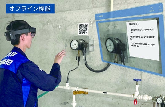 QRコードを起点に、事前に設定した座標位置に各ファイル(画像/動画/PDF)を表示する機能により、通信環境が途絶しても作業者が現場で必要な手順や動画を確認できます。