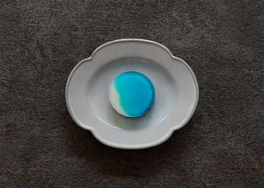 青は静、白は余韻。 澄んだ空気にほどける雲のベールが、秋の澄んだ空の青から薄雲の白へ溶けゆく。秋の薄雲をグラデーションで表現したバターサンド。 ほんのりレモン風味とミルクの琥珀羹、フレッシュバターのミルク感の味わい。