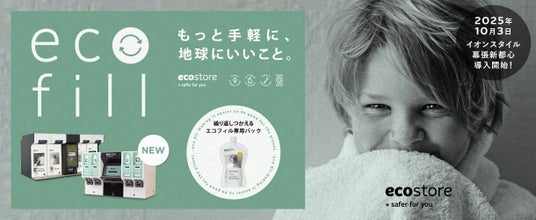 「ecostore(エコストア)」を展開する株式会社ecostore JAPAN(東京都千代田区/代表取締役社長:花生洋平)は、イオンリテール株式会社(千葉県千葉市/取締役代表執行役社長:古澤康之、以下「イオンリテール」)が運営するイオンスタイル幕張新都心にて、自動洗剤充てん機システム「ecofill(以下、エコフィル)」を、10月3日(金)より導入いたします。今回導入する機械は、これまでよりもさらに使いやすく進化しています。今後は、イオンリテール他店舗へ順次拡大しながら、日本のリフィル文化の浸透とプラスチックごみの削減に貢献してまいります。