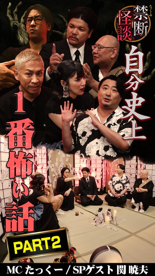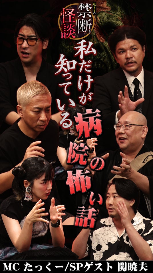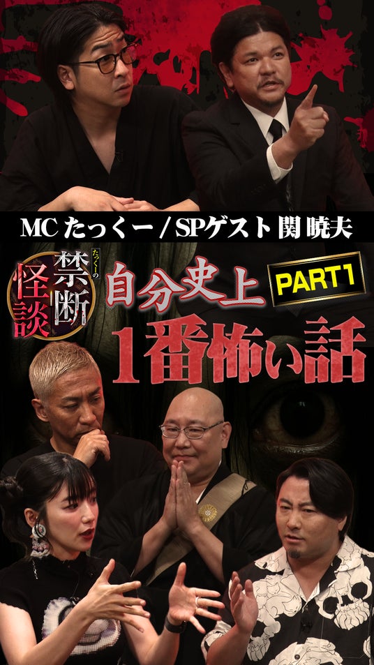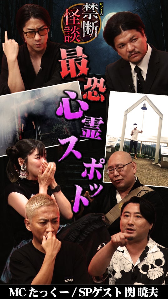 たっくーさんコメント関さんとは、僕がYouTubeでモノマネさせていただいたことをきっかけにコラボしていただいて、タテドラの『Mr.都市伝説・関暁夫の裏都市伝説』にも呼んでいただきました。初対面は人生で一番緊張しましたね...。あの頃は、まさか自分の番組に来ていただけるとは夢にも思いませんでした。今回関さんが“怪談”というジャンルにゲストとして来てくださったからか、他のゲストの方々はこれまで共演したときよりも気合いが入っていた印象です。