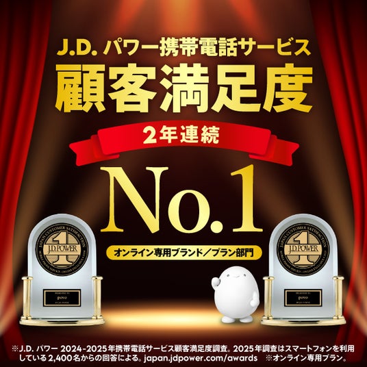 KDDI、沖縄セルラーは、株式会社J.D. パワー ジャパンが実施した「J.D. パワー 2025年携帯電話サービス顧客満足度調査(SM)」(以下、 本調査(注))のオンライン専用ブランド/プラン部門において、オンライン専用ブランドpovoが2年連続となる総合満足度第1位を受賞したことをお知らせします。