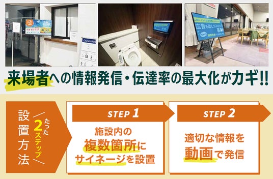 - 【期間限定】サイネージを無料設置&施設からお知らせ配信&オリジナル動画を1つ無料プレゼント!