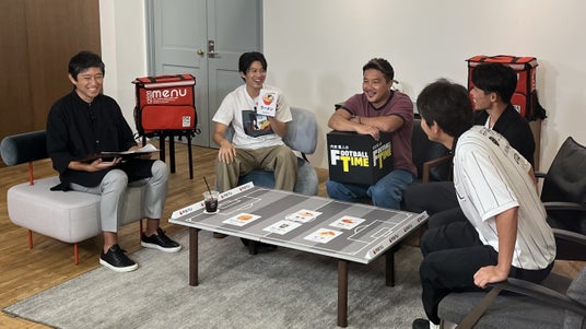 当日は、サッカー界の「調子乗り世代」を代表する内田篤人さん、野村明弘さん、柏木陽介さん、安田理大さんがスタジオに集結。番組内では、menuで注文できるグルメが書かれた「フードカード」を用意し、出演者が引いたカードのグルメにまつわるエピソードを紹介。さらに、裏面に記されたテーマに沿ってトークを展開します。サッカー界ならではの“すべらない話”で、記念すべき特別回を盛り上げます。