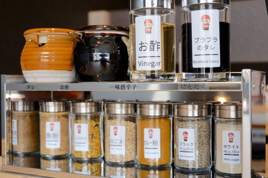 ・卓上トッピングが充実(刻み玉ねぎ・にんにく・魚粉・特製一味唐辛子など)