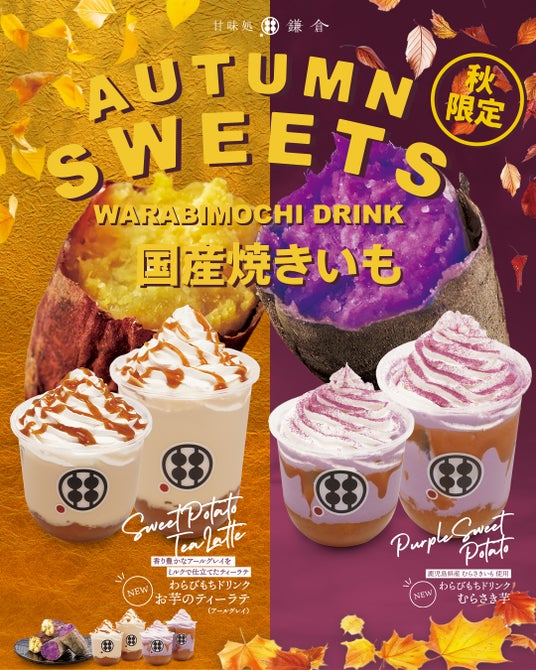 国産焼きいもペーストを贅沢に使った、秋限定のわらびもちドリンク2種が2025年9月26日(金)より販売開始となります。