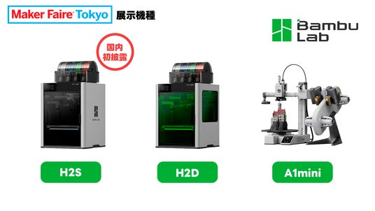 BambuLab社からは日本初披露となるH2SやデュアルヘッドのH2D、A1miniなどを展示。
