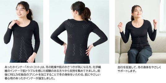 血行を促進し、身体をサポートする「RELIVE」×肌にやさしいあったかインナー「ホットコット」