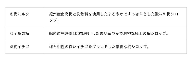 ■3種類の特製梅シロップ
