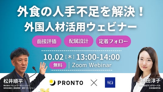 【無料共催ウェビナー】外食の人手不足を解決!外国人材活用ウェビナー(PRONTO × TCJ)を10/2(木)に開催