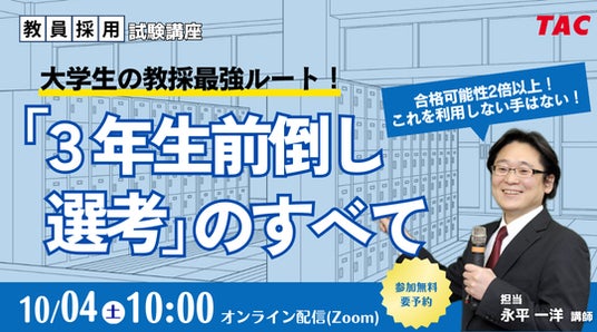 【TAC教員採用試験】オンラインセミナー『大学生の教採最強ルート!「3年生前倒し選考」のすべて』を10/4(土)に開催