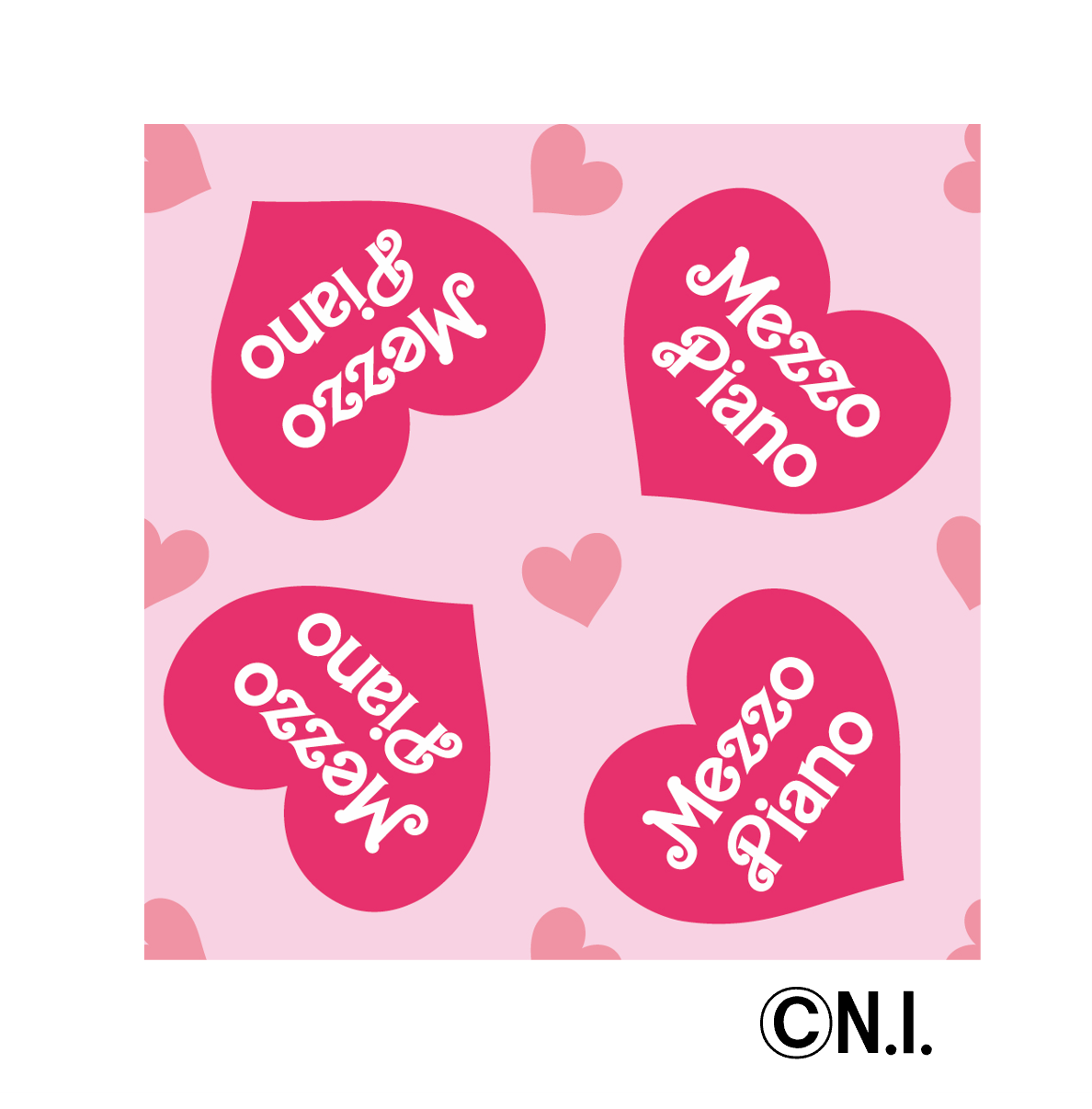 敷紙パステルカラーのピンクを背景に、ハート型のメゾ ピアノブランドロゴをあしらいました。ちらりと見えるワンポイントは写真映え間違いなしです!