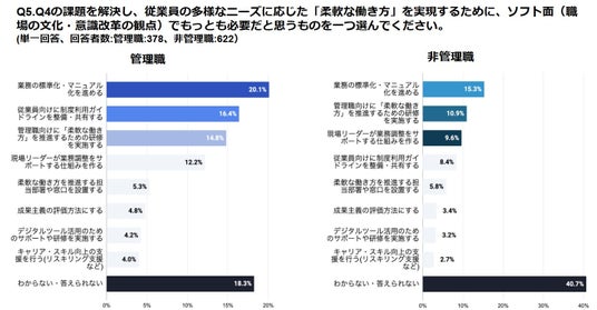 【育児・介護休業法改正意識調査】 法改正が目指す“柔軟な働き方”の実現には“業務標準化・システム導入”が必要と管理職は認識
