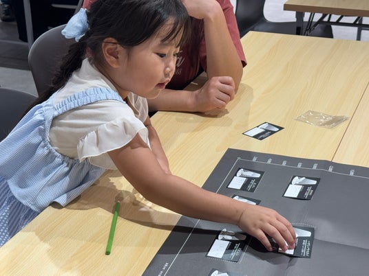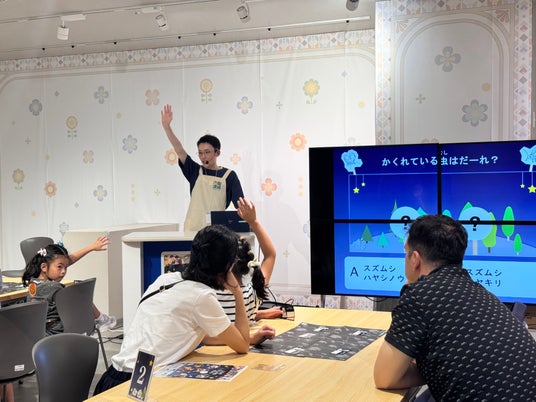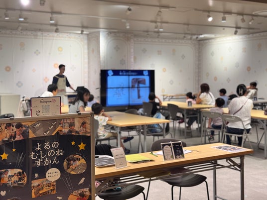 眼鏡市場は、虫の鳴き声を通して「聞こえることの大切さ」を学ぶワークショップ『よるの むしのね ずかん』を全国で開催しています。13回目となる今回は、東京都府中市にあるショッピングセンター「ミッテン府中」の9階イベントスペースにて、2025年9月20日(土)と9月21日(日)に開催し、2日間で小学生までの子ども31名と保護者32名、合わせて63名のご家族が参加しました。