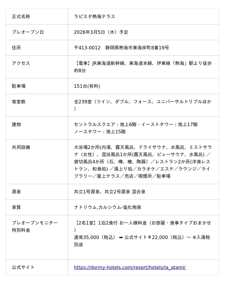 『ラビスタ熱海テラス』公式WEBサイト:https://dormy-hotels.com/resort/hotels/la_atami/