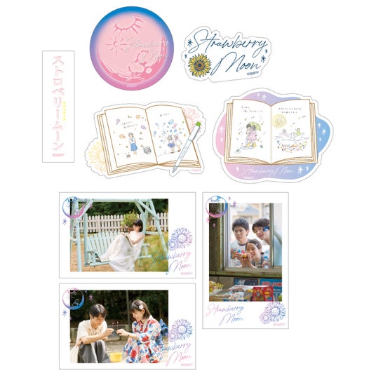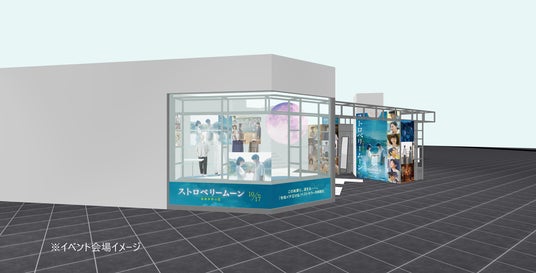 会場では、映画の世界観をより深く楽しめる「ストロベリームーン」のモニュメントや劇中使用衣装・小道具・場面写真の展示、特別映像の放映を行います。また、劇場グッズを先行で販売、そのほか原作書籍「ストロベリームーン」・続編「コールドムーン」、劇中に登場するハート型イヤフォン「HeartBuds(ハートバッツ)」もラインナップ。