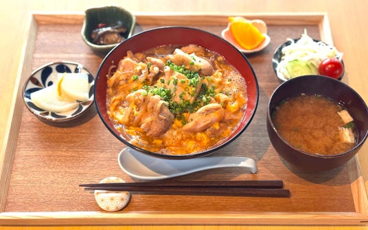 黄ニラ醤油だしの黄金親子丼岡山県特産の黄ニラを使用した特製醤油だしで、鶏肉と卵をふんわりと仕上げました。