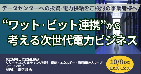 【JPIセミナー】「“ワット・ビット連携”から考える次世代電力ビジネス」10月8日(水)開催