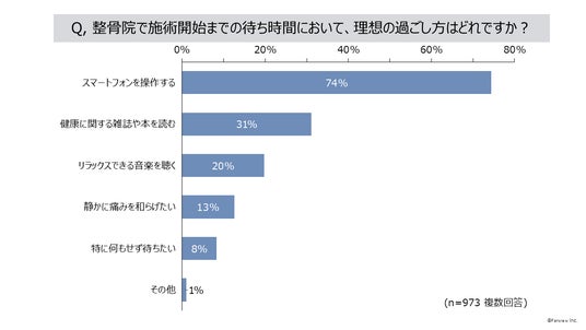 - 施術開始までの待ち時間で理想の過ごし方は「スマホを見る」「健康に関する雑誌や本を読む」