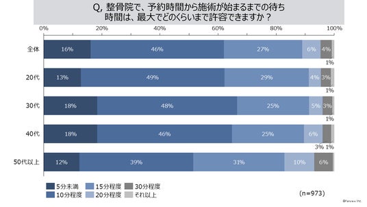 1.予約から施術開始までの待ち時間で許容できるのは「10分程度」46%