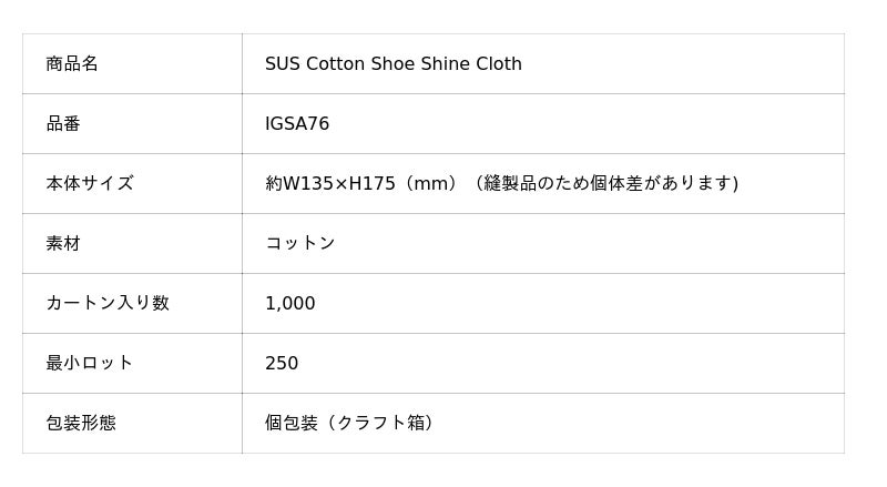 ■新製品1|靴のお手入れに欠かせない!コットン100%使用の『SUS Cotton Shoe Shine Cloth(コットンシュークロス)』