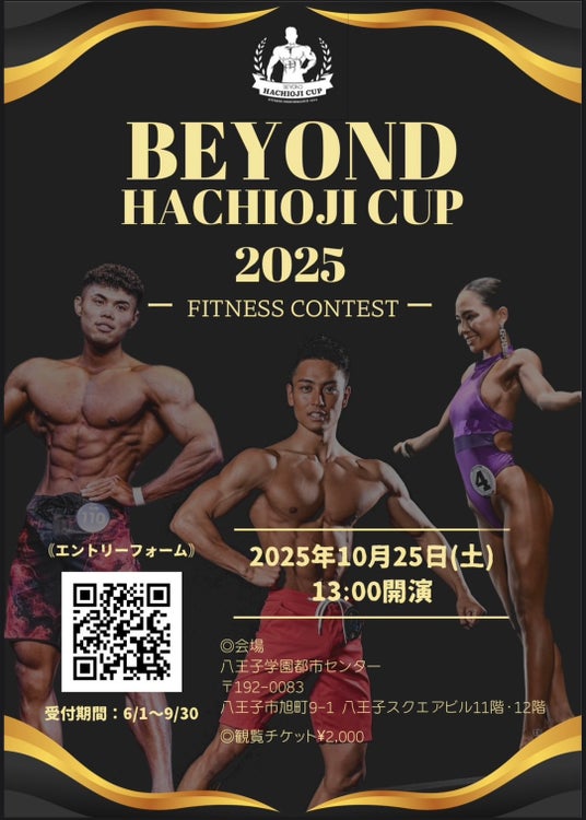 株式会社ワールドフィット(本社:東京都渋谷区、代表取締役:高城大樹)が運営するパーソナルジム【BEYOND】八王子店は、2025年10月25日(土)、八王子市の学園都市センターにて美ボディを競うコンテスト「BEYOND八王子カップ」を開催いたします。本大会は、八王子を“フィットネス大国”にしたいという想いから誕生した地域密着型イベントで、約30社の地元企業が協賛。フィットネスを通じて地域の健康促進とコミュニティづくりを目指します。