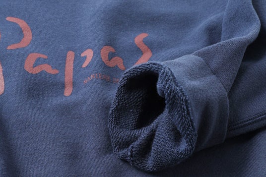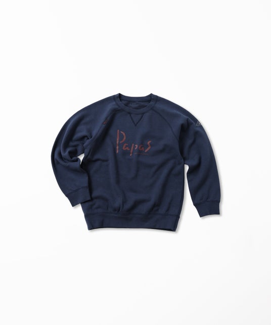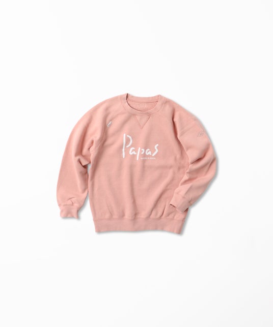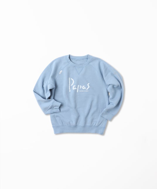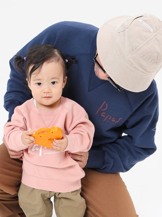 大人用の定番トレーナー(品番:D0425UTR301)を元に、前身頃にPapasロゴをプリントしたデザインで、親子やご家族でおそろいにするのもおすすめ。
