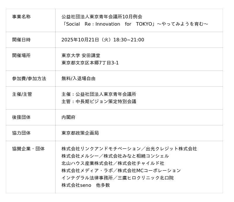 【社会を1ミリでも良くしたい方へ】(公社)東京青年会議所10月例会へご招待!東京、日本の未来を考える2時間半。10月21日18:30~