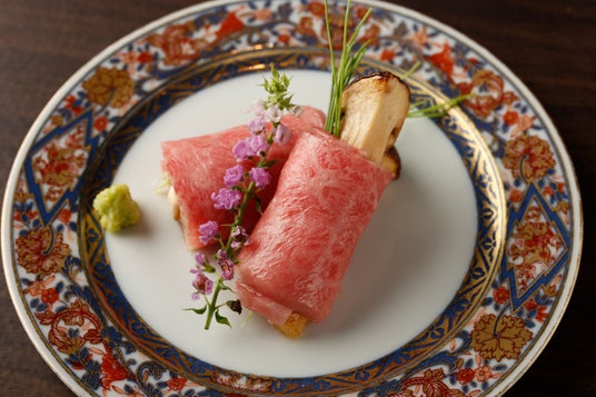 チャンピオン和牛・鹿児島黒牛で香り高い松茸を包み込んだ、秋限定の贅沢なひと品。