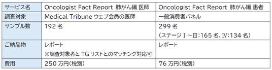 株式会社メディカルトリビューン(本社:東京都港区、代表取締役社長:堀川修)は、医師調査および患者調査に基づく最新の調査レポート「Oncologist Fact Report 肺がん編(医師・患者)」を刊行いたしました。