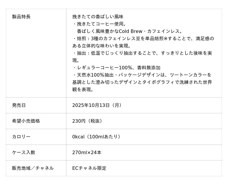 また、ECチャネル限定でデカフェタイプの『UCC Cold Brew DECAF PET270ml』を10月13日(月)発売します。